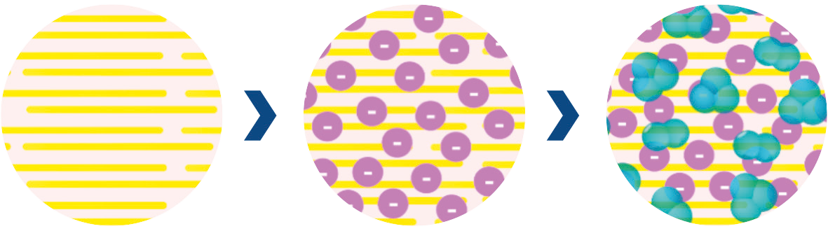 Технология PoliONICol® позволяет усилить гидратирующие свойства коллагена за счет создания отрицательных зарядов на поверхности молекулы белка (коллагена), что позволяет волокнам белка удерживать значительно большее количество воды в тканях.