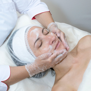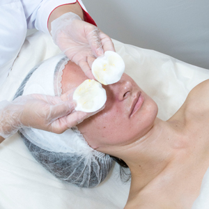 После проведения демакияжа очищение проводится специально разработанным очищающим средством Cleanser (pH 5,0–5,5), не содержащим парабены. Необходимо нанести на кожу Очищающее средство, затем смыть его теплой водой и высушить кожу бумажными салфетками. Еще раз повторить манипуляцию. Далее – нужно обработать зону предполагаемого проведения пилинга раствором хлоргексидина биглюконата 0,05% для наружного и местного применения.