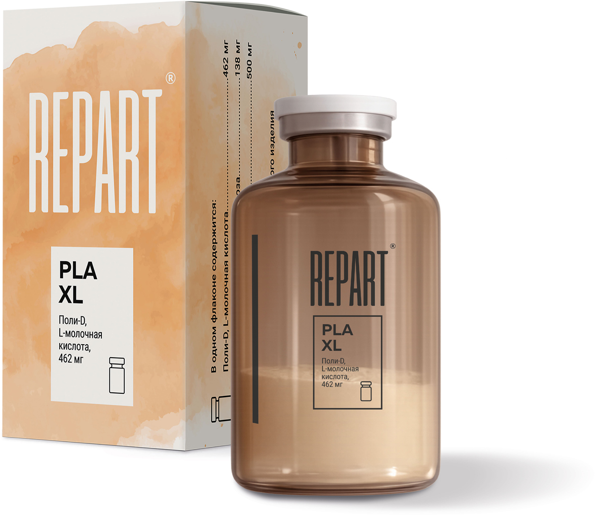 Основным компонентом «Repart® PLA XL» является поли-D, L-молочная кислота – биосовместимый, биодеградируемый синтетический полимер из группы полимеров альфаоксикислот. За счет плотного гранулометрического распределения микросфер поли-D, L-молочной кислоты в подкожный слой дермы происходит механическое поднятие тканей, находящихся над ним, тем самым корректируя ту часть, на которую необходимо оказать влияние. Благодаря равномерному распределению имплантата происходит коррекция дряблости кожи и восполнение недостающего объема в зоне инъекции.